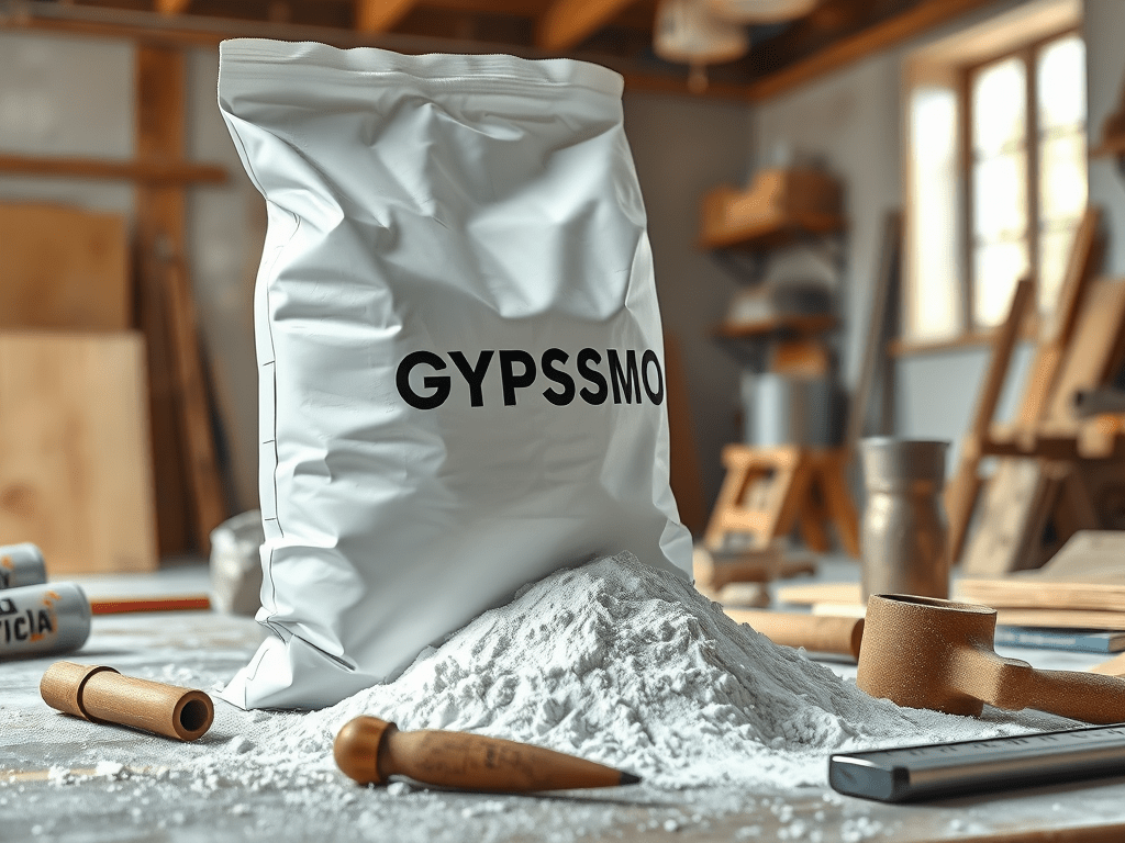 O Gesso é um pó branco de elevada finura e se encontra no mercado em saco de 25kg, 50kg ou até 60 Kg, com os nomes de gesso estuque, ou gesso molde. A sua pega se faz misturando-o com água.